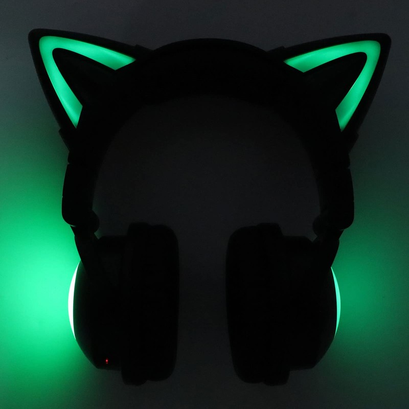 Cat Ear Headphones, Foldable Gaming Headset with Led Light Stereo Sound, Over Ear Headsets with Built - in Mic for Pc Laptop Smartphone Kids Adult Gift