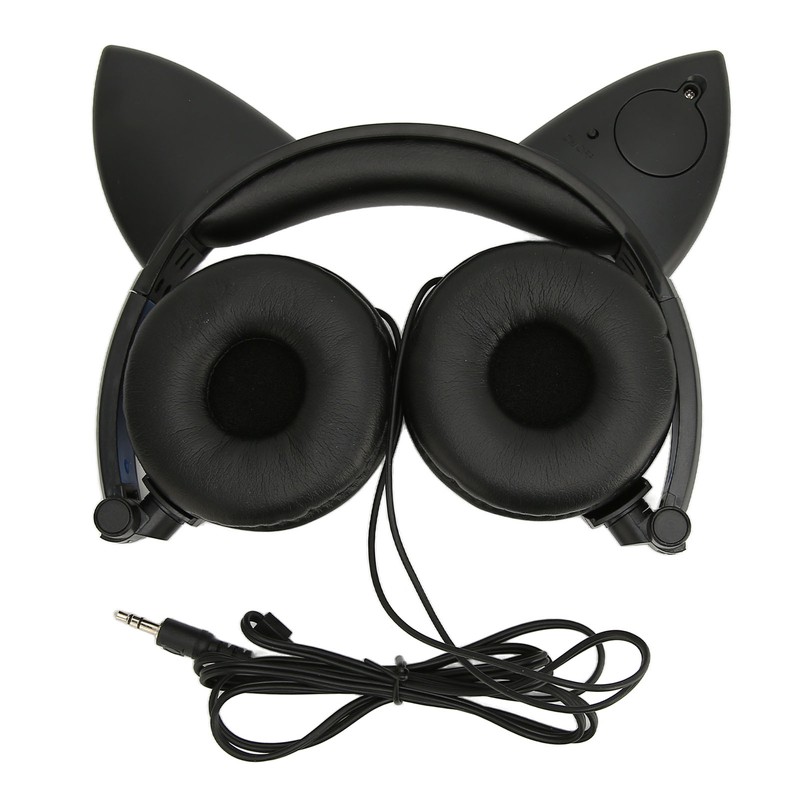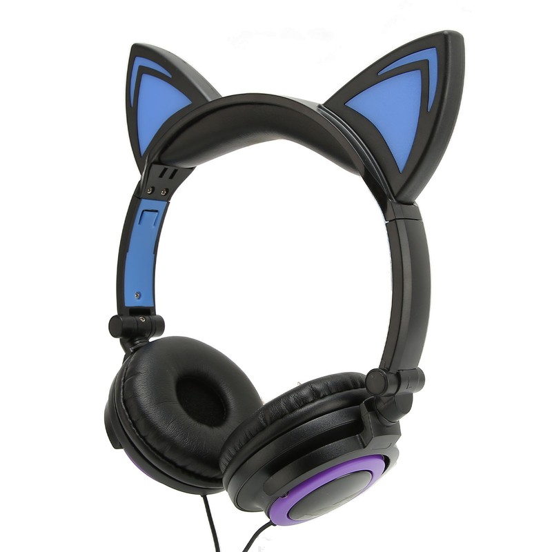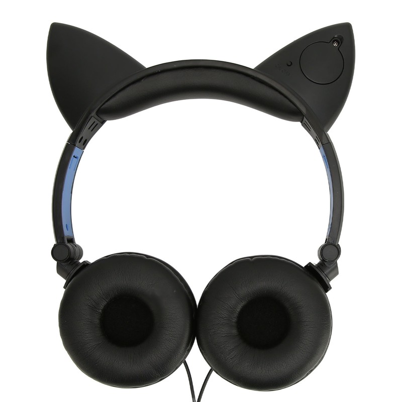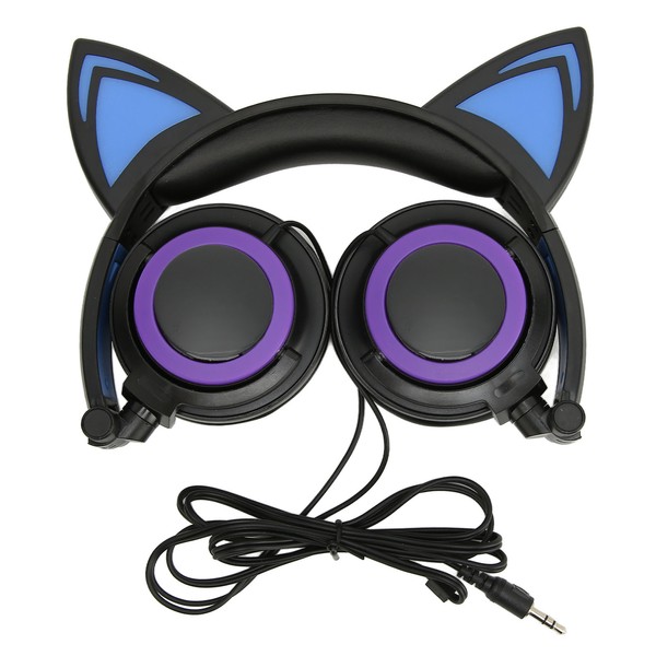 Cat Ear Wired Headphone Noise Reduction Cute Kids Cartoon Headset with LED Light for Tablets Computers Cell Phones