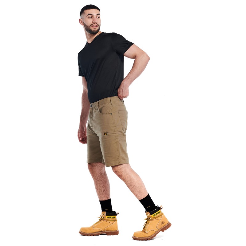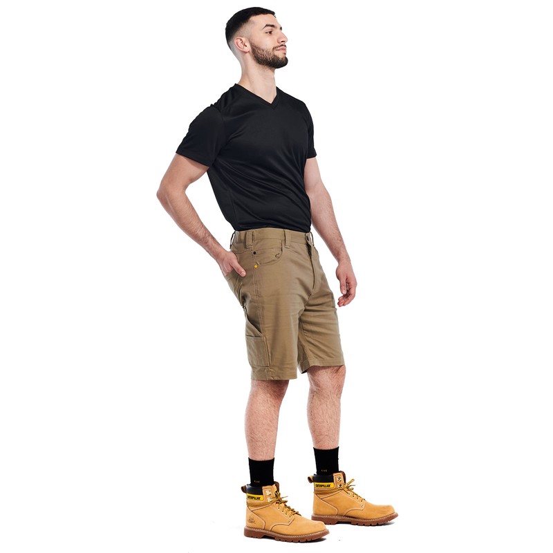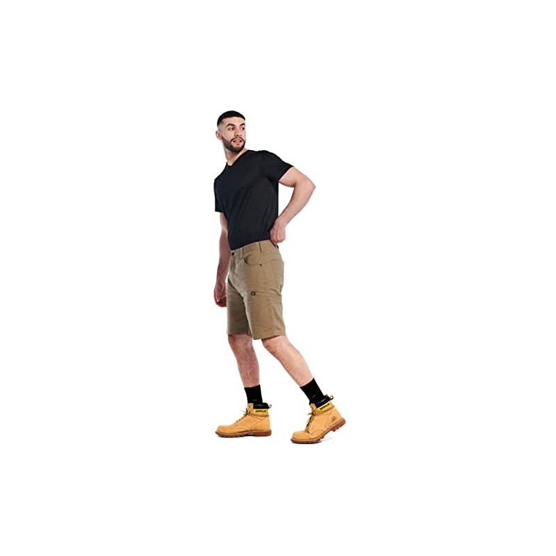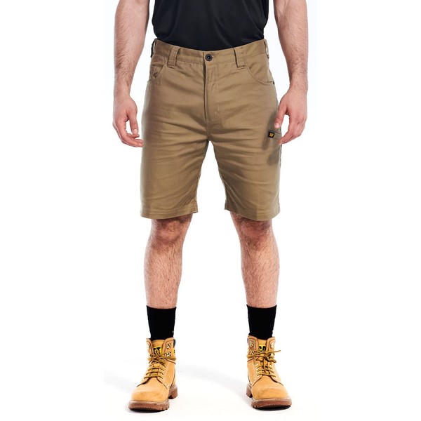 Cat erpillar Men's Canvas Utility Shorts with 2-Way Stretch, Secure Thigh Pocket and Reinforced Belt Loops, khaki