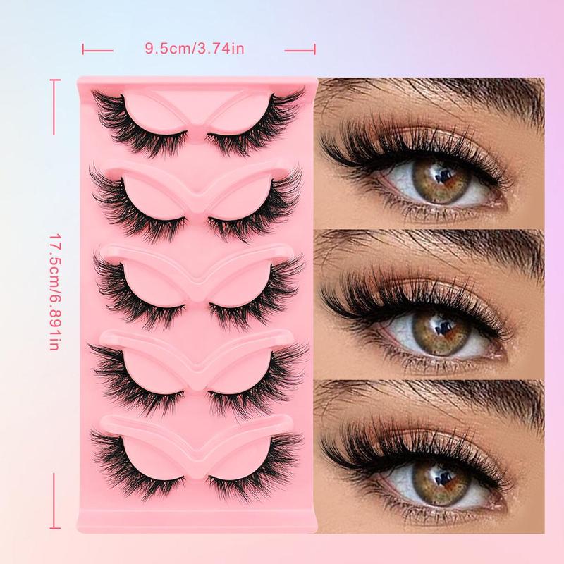 Cat Eye False Eyelashes, 5 Pairs Natural Fluffy Curling Faux Cluster Lashes, Volumized False Eyelashes for Women and Girls Eye Makeup Enhancement