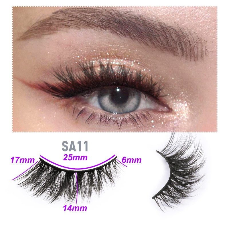 Cat Eye lashes 10 pairs Short Faux M ink Lashes Natural Look Wispies Eyelashes 3D Fake Lashes Small Face Eyelashes 100% Handmade Lashes Soft Reusable Eye Lash 1 Pack by EMEDA (SA11)