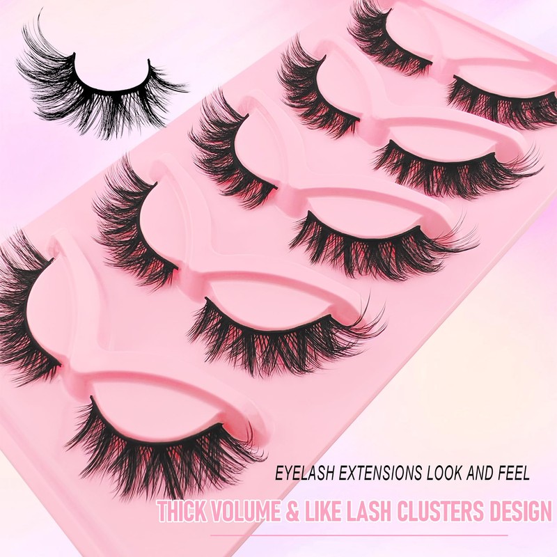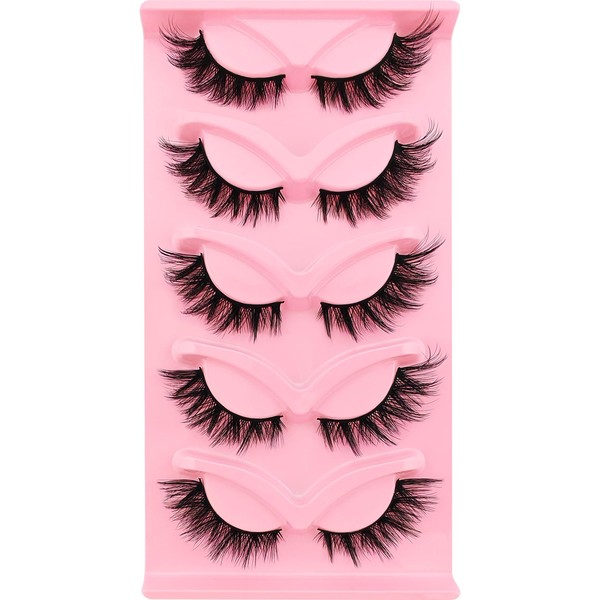 Cat Eye Lashes Fluffy 18mm Curly Volume Eyelashes, that Look Like Extensions Fox Eye Lashes, Wispy Faux Mink False Eyelashes 5 Pairs Pack(6X)