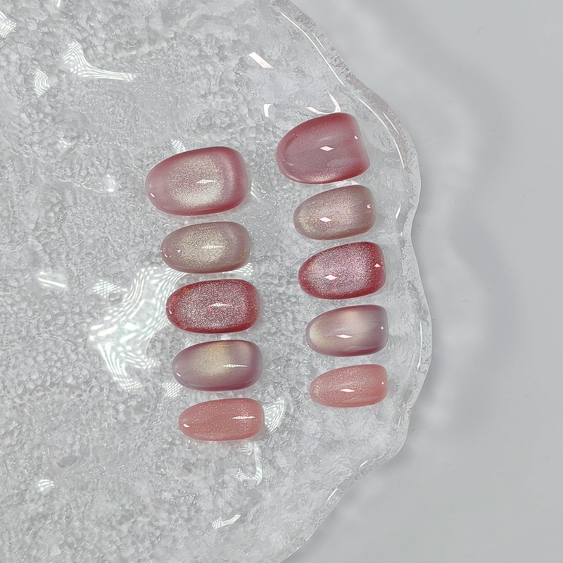 - DESIGN: Our short oval/square/extra short square round stick-on nails are all handmade by experienced and aesthetic nail artists. These magnetic cat eye false nails have glitter shimmer/sequins/aurora/side light/solid color/french tips/double-color light/jelly/water-like soak off designs, clean and elegant, exquisite and unique