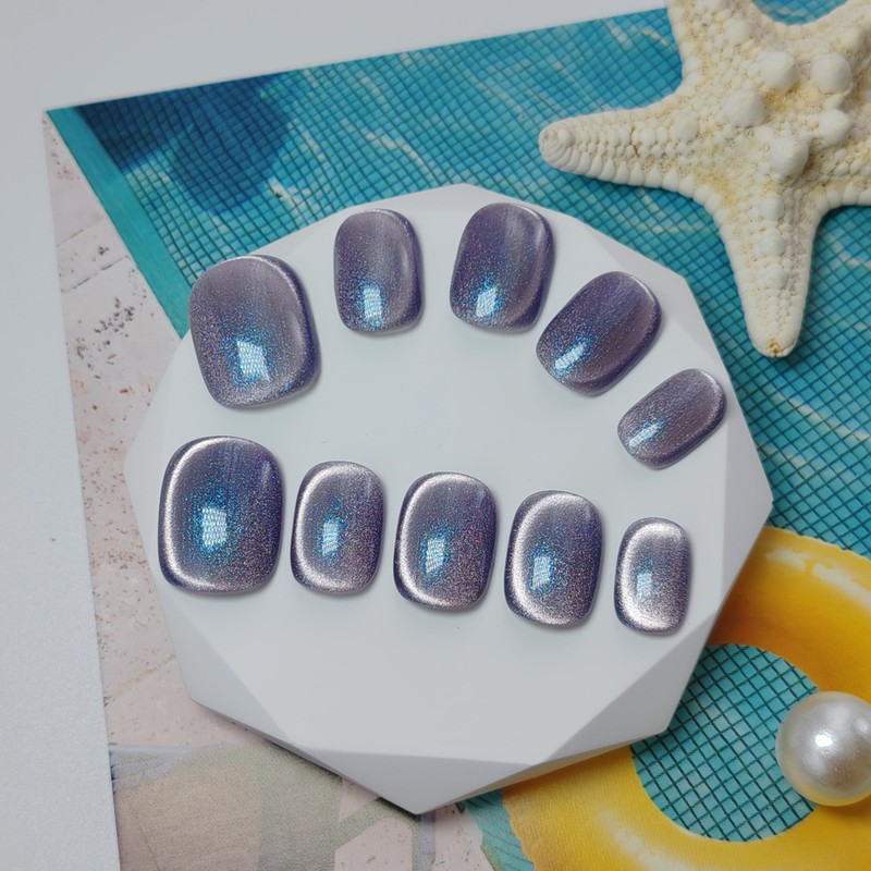 - DESIGN: Our short oval/square/extra short square round stick-on nails are all handmade by experienced and aesthetic nail artists. These magnetic cat eye false nails have glitter shimmer/sequins/aurora/side light/solid color/french tips/double-color light/jelly/water-like soak off designs, clean and elegant, exquisite and unique