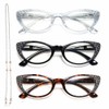 - 3 Pack Retro Reading Glasses - 3 cat eye frame reading glasses for women+1 soft eye glasses cleaning cloth +1 fashion eyeglass chain