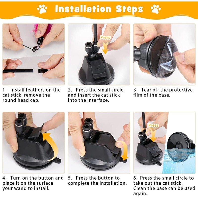 - 😸【Strong Suction Cup】This cat toys has a strong suction cup, our interactive cat toys can be stable and safe. The suction cup test cat toys can cling to floors, walls, wood, glass, stainless steel and marble. Just buckle down the base, the suction cup will be tightly adsorbed, the strong adsorption capacity can provide a good playing environment for cats and avoid boring time