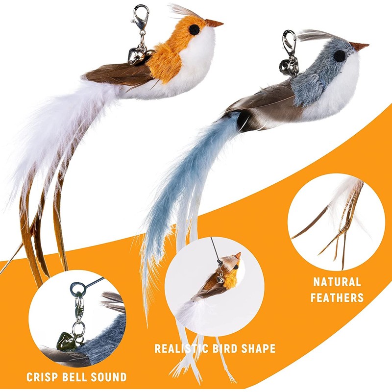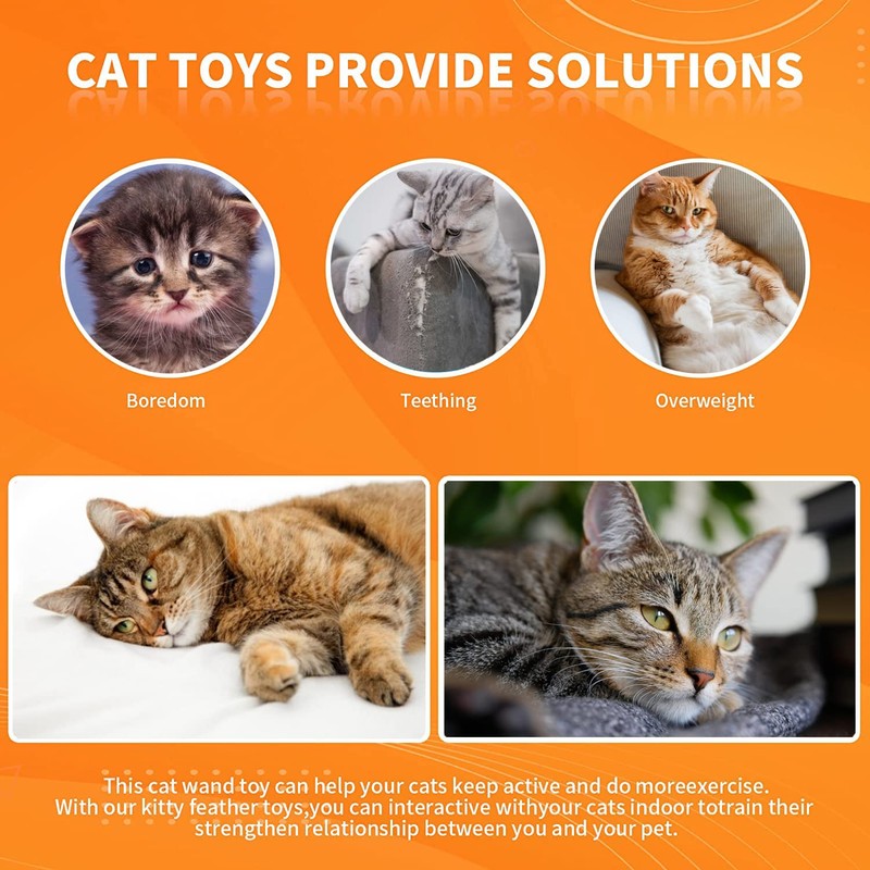- 😸【INTERACTIVE CAT FEATHER TOYS】Cats are very interested in feathers, especially moving feathers with bell ringing. Cats will fall in love with this feather wand, can't stop jumping, catching and chasing the feathers. It's a great way to get a lot of exercise for your cats.