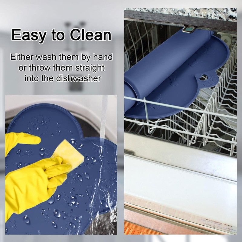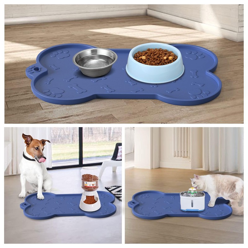 - 【Anti-slip & 100% Waterproof】Cat dog food mats,the silicone dog mats for food and water bowls are made of 100% waterproof silicone, with a spill-proof silicone surface and raised bone shape to help keep your pet's bowl in place and off the floor, allowing your pet to eat with peace of mind.