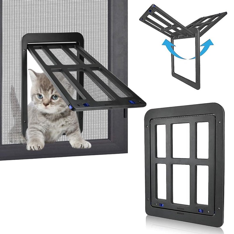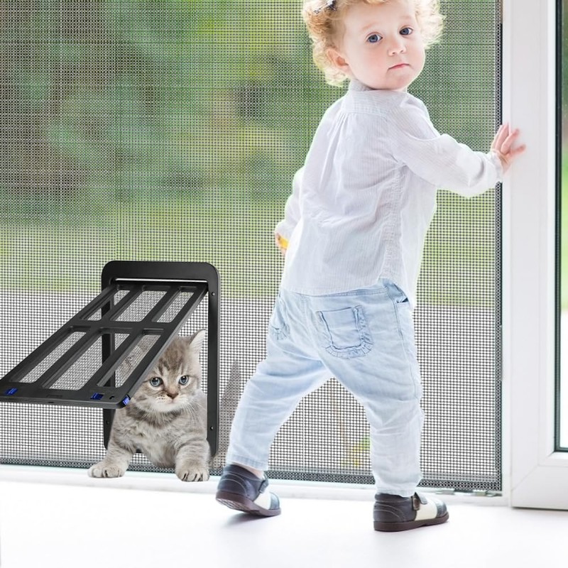 - Free access: with this cat flap for fly screen, your pet can come and go freely. It is equipped with a magnet at the bottom and the door closes automatically when not in use. Two sliding latches at the bottom of the flap help you lock the pet door, allowing your pet to stay at home when you are not at home.
