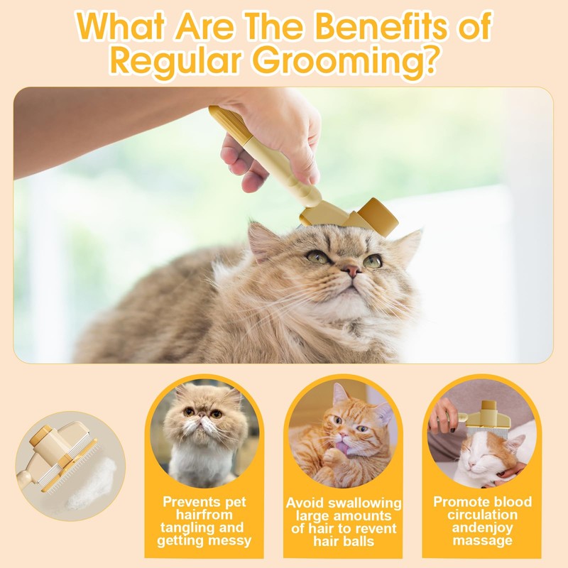 - 【One-Click Cleaning Button]】 After cleaning your pet, simply click the self-cleaning button. The shutter will pop out, separating the brushed hair from the metal needle, then wipe the hair off. The button of cat shedding brush on the pet brush saves time and energy when grooming and cleaning.