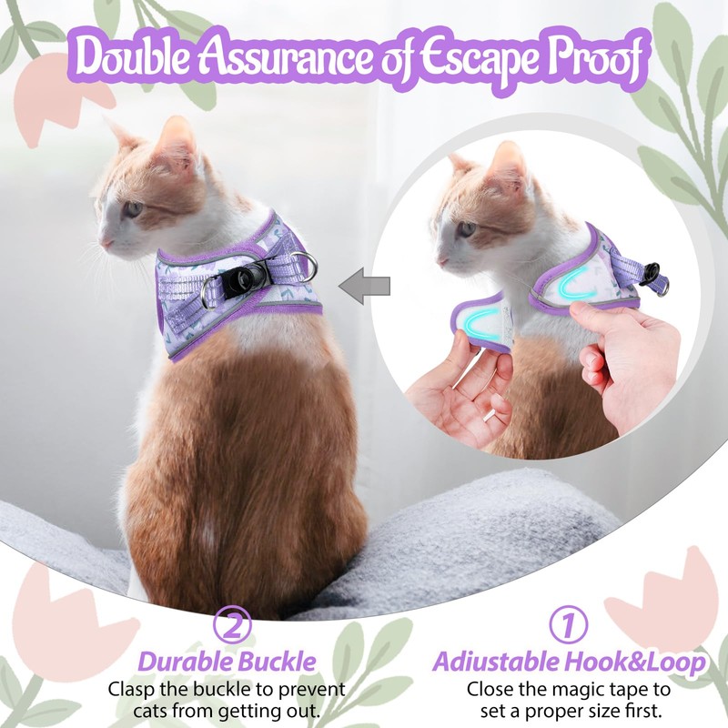- Cat Harness and Lead Escape Proof for Walking, Adjustable Soft Kitten Harness with Reflective Straps Step in Cat Vest Harness for Small Kitten and XS Dogs
