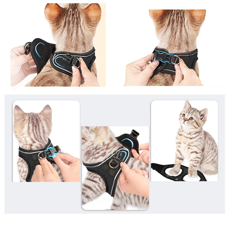 - Improved Safety Design: The fast release buckle and metal D-rings for leash attachment ensure that your cat will stay securely in the harness while you are out on your daily walks. For additional safety, our escape proof cat harness has a reflective strips design, which can keep your kitty always visible even at night