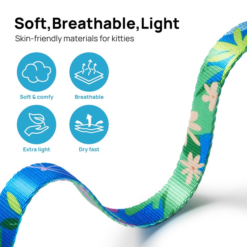 Cat Harness and Leash Set - Escape Proof Adjustable Cat Harness, Comfortable Soft Lightweight, Use Safe & Easy, Walking Travel Kitten Harness for Small Medium Large Cats (Hawaii Green)