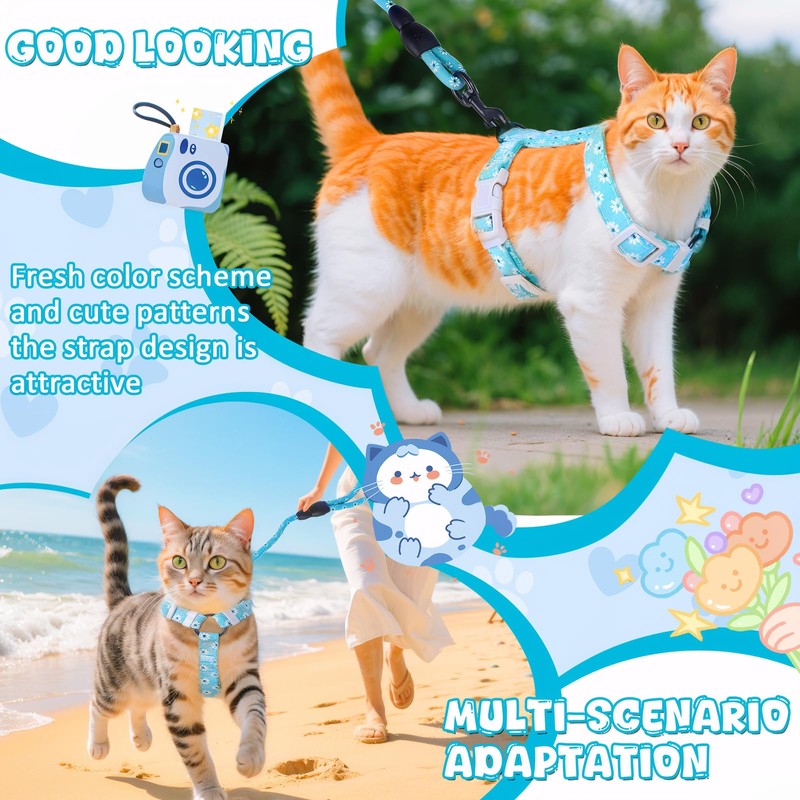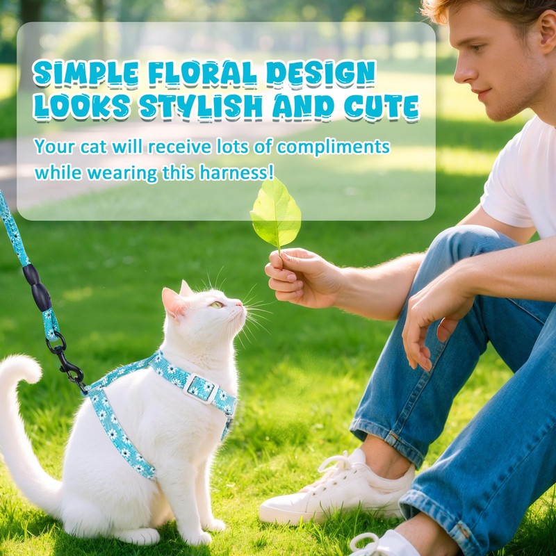 - 【Escape Proof Cat Harness】 Our comfortable floral cats harness feature a dual protection design, securely wrapped around the neck and chest to prevent any chance of escape. The simple design reduces pressure on the cat's neck and back, allowing your cat companion to enjoy outdoor activities without any worries. Your cat will hardly feel that he is wearing the harness, suitable for daily walking, jogging, training and any outdoor leisure activities.
