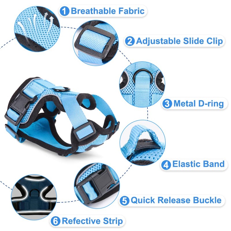 - Super comfortable and durable: the 360° wrap-around harness is made of high-quality material with soft edge and air mesh padding, comfortable and breathable. It is soft and lightweight (approx. 89 g), fits the body perfectly.