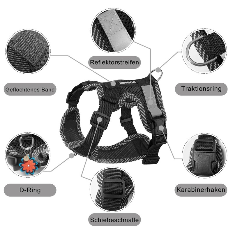 - Safety and Loss Prevention The newly designed cat harness features a loop on the chest, which can be used to hang information cards and night lights, the D-ring design on the back is more stable, the double protection of the buckle and the adjustment buckle can prevent pets from running away and getting lost.