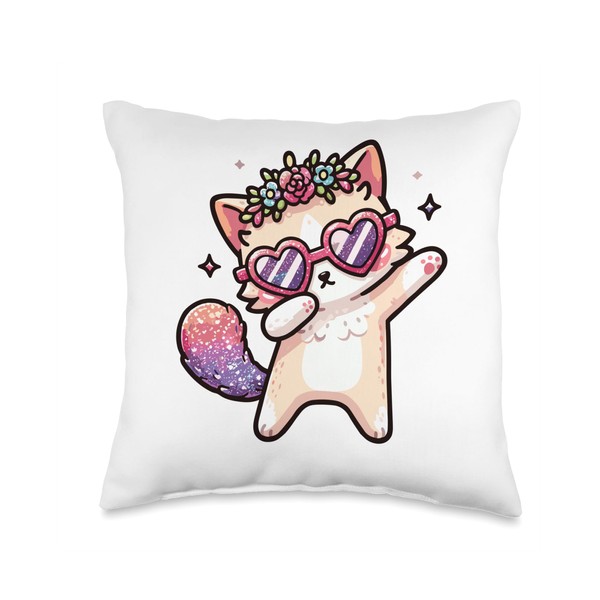 Cat Heart Shape Sunglasses Dabbing Dance Lover Throw Pillow