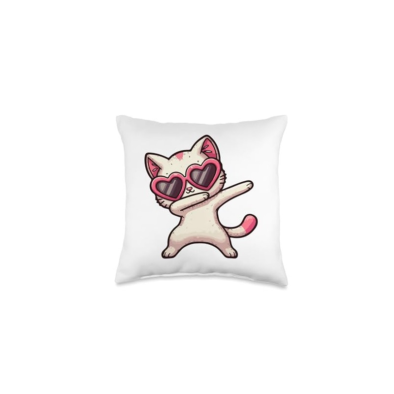 Cat Heart Shape Sunglasses Dabbing Dance Lover Throw Pillow