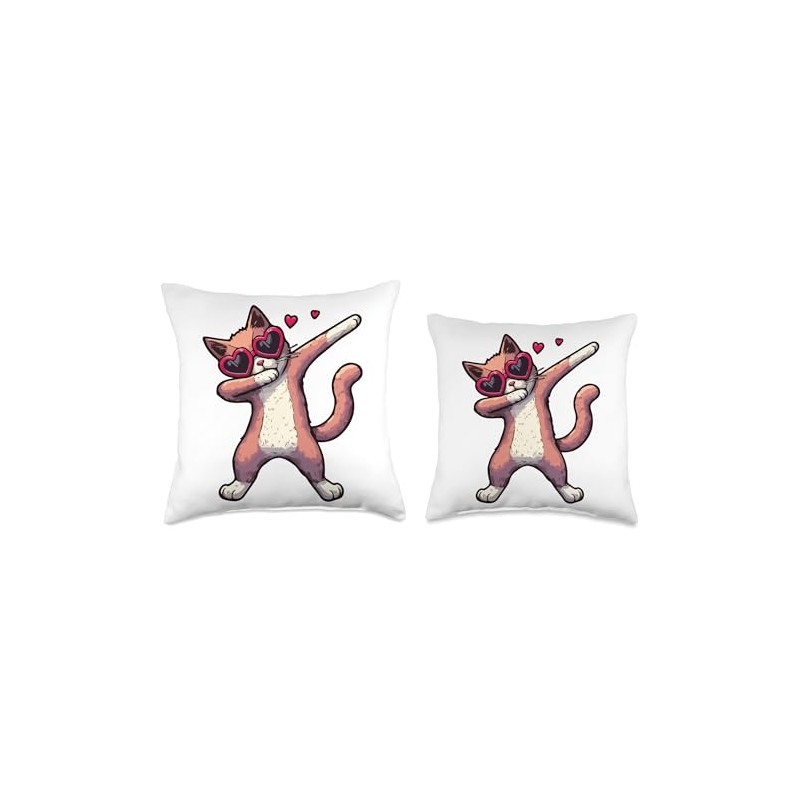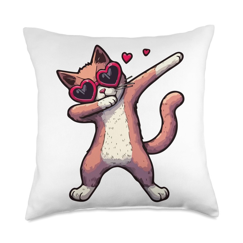 Cat Heart Shape Sunglasses Dabbing Dance Lover Throw Pillow