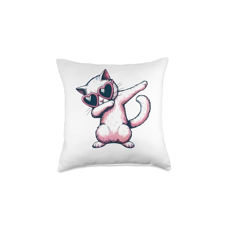 Cat Heart Shape Sunglasses Dabbing Dance Lover Throw Pillow