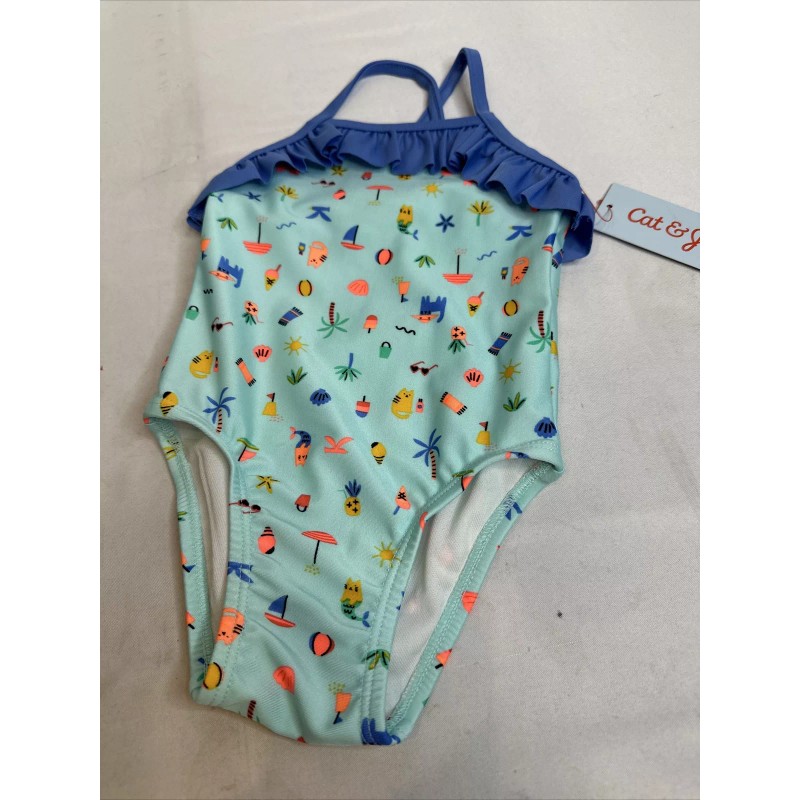 Enjoy the summer with this adorable Cat & Jack One Piece Swimsuit! Perfect for a day at the beach or pool, this swimsuit features UPF 50+ to keep your little one protected from the sun's harmful rays. The multicolor swimsuit has a fun beach theme with cute ruffle accents that add a touch of cuteness to this unisex swimsuit.