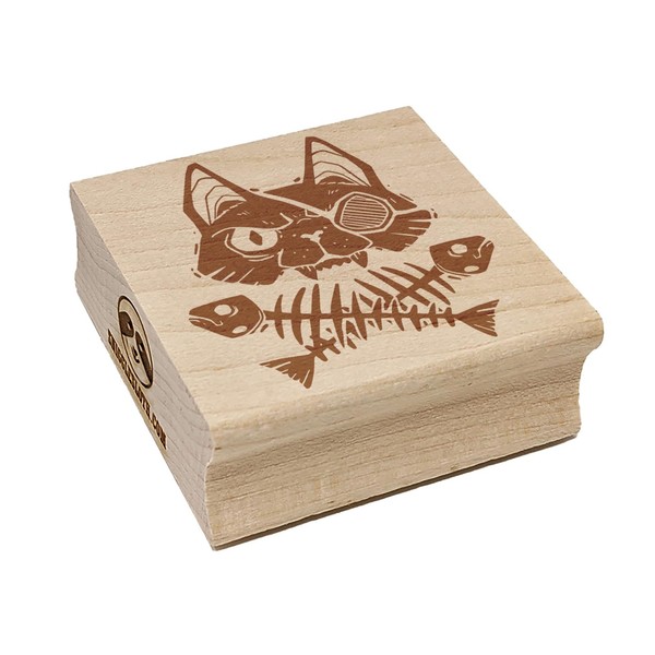 Cat Jolly Roger Fish Bones Pirate Square Rubber Stamp for Stamping Crafting - 1.25in Small