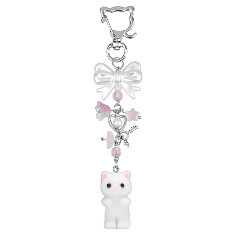 • Cute Design: The cat keychain is decorated with a fluffy cat, as well as pendants such as bows, pearls, hearts, etc. It looks cute and can make your keychain look more charming.