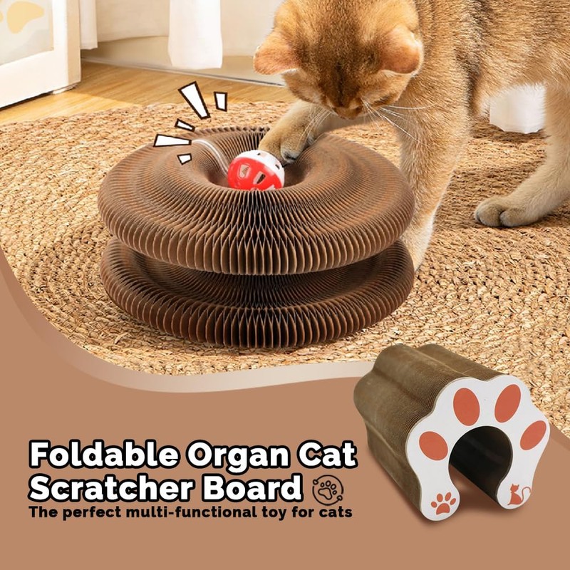 Cat kurlz,Cat Scratching Board Toy with a Ball,Magic Organ Cat Scratch Board Foldable Accordion Cat Toy