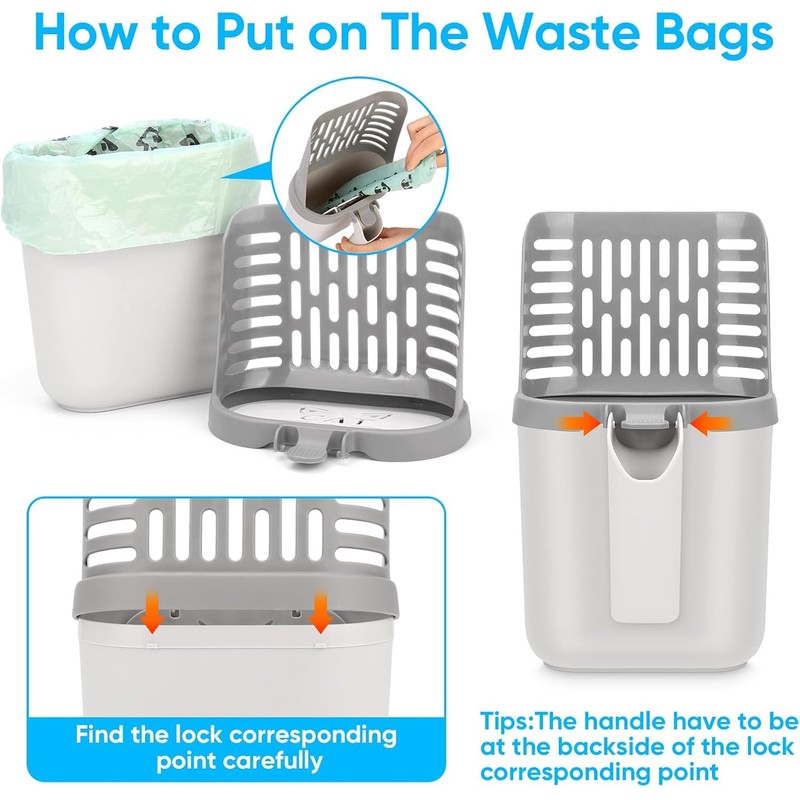 - 【Scooper with Holder】Cleaning and collection are build in one, You can clean up pet waste conveniently and quickly with one hand, and it has an extra blocking cover to keep pet waste inside and not fall out, perfect for daily cleaning.