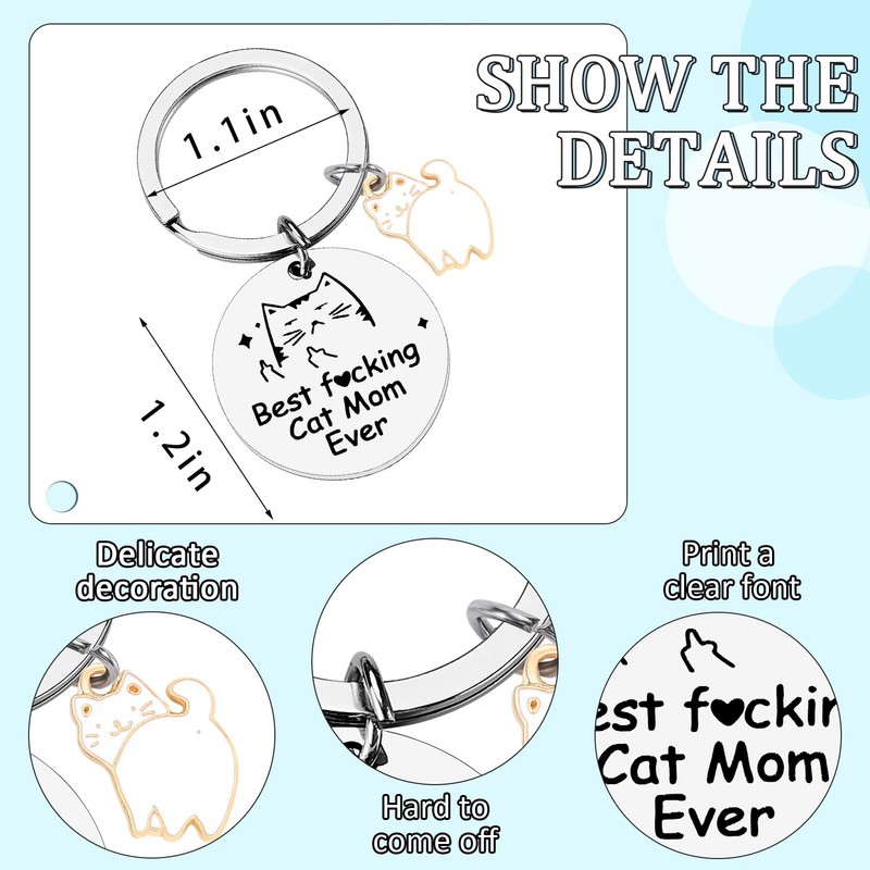 - Gift Ideal:This funny key chain not only can be used as a key chain for daily life,but also used as a fashion ornament,becoming an indispensable and elegant decoration for modern ladies.Ideal for Mother's Day gifts,Christmas gifts,Thanksgiving Day gifts,birthday gifts for girls,friends,lovers and mothers,cute key chains for cat mom,funny key chain