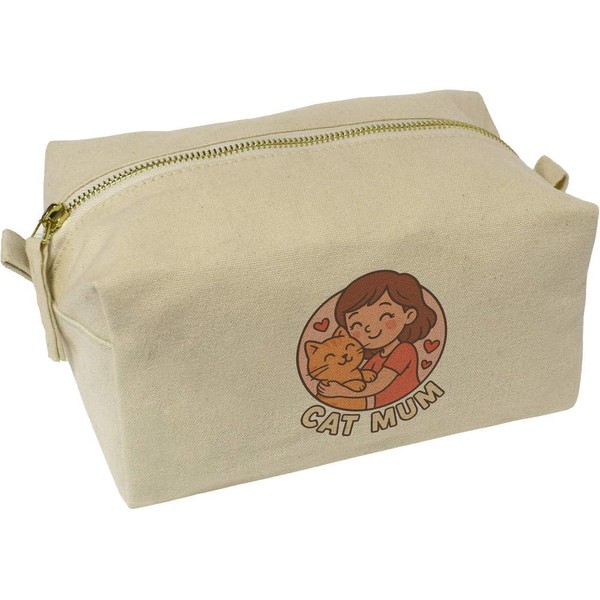 'Cat Mum' Canvas Wash Bag/Makeup Case (CS00044630)