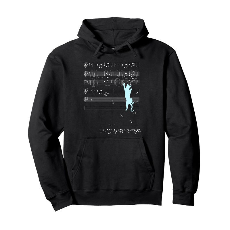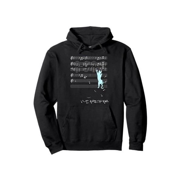 Cat Music Sheet Musical Notes Climbing Kitten Silhouette Pullover Hoodie
