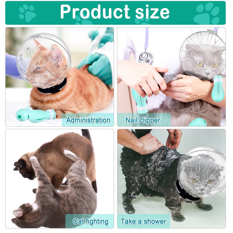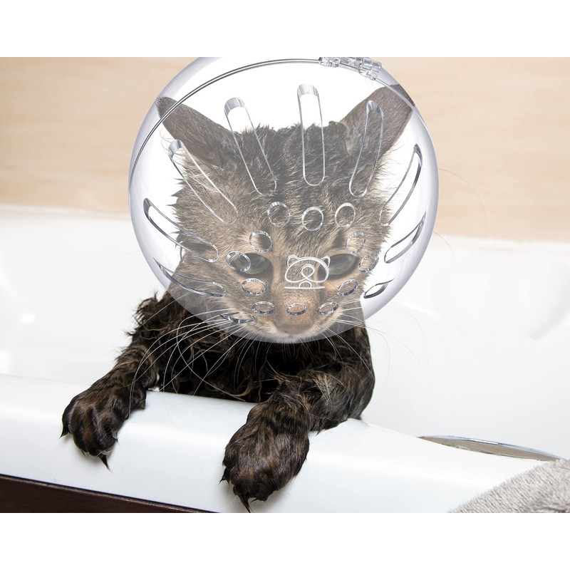 This cat grooming helmet is easy to put on and take off, and has 12 holes that can keep your kitten comfortable and are enough to breath. Transparent design, large space, open view and more light reduce the cat's fear and anxiety.