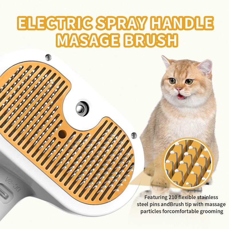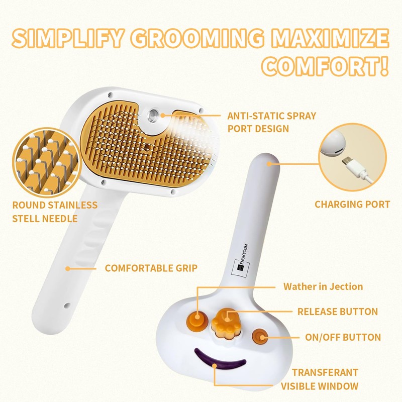 Cat Pet Steam Brush – 3-in-1 Spray & Massage Comb for Shedding & Grooming – Anti-Static Water Brush for Long & Short Haired Pets – Mist Spritz Defur Tool