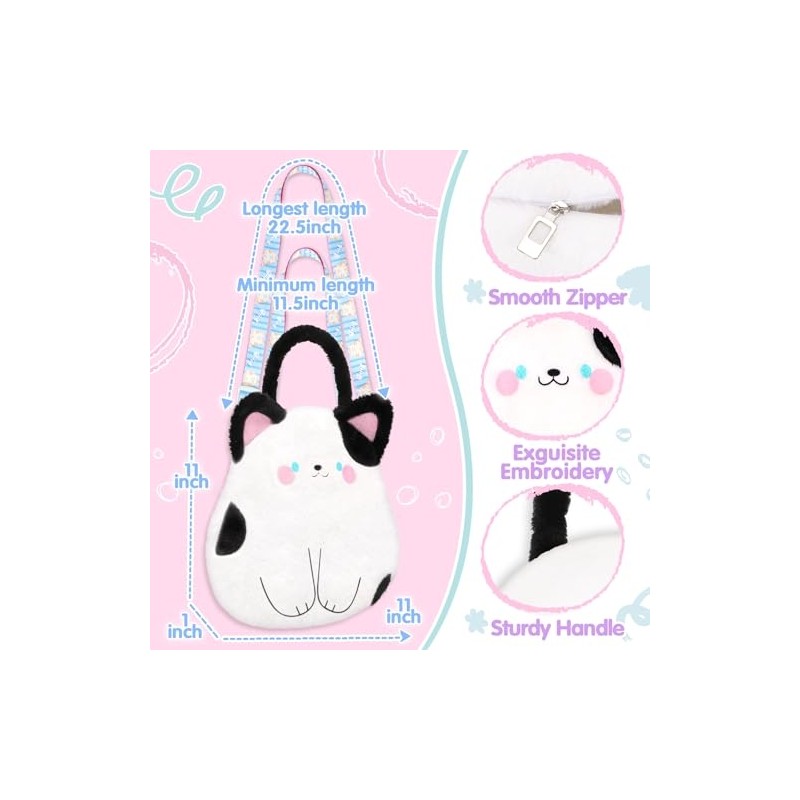 Cat Plush Bag Kids Crossbody Bag for Kids, Plush Handbag Tote Bag with Adjustable Strap,Soft Plush Cat Stuffed Purse with Zipper,Coin Pouch Accessories for Toddlers Kids