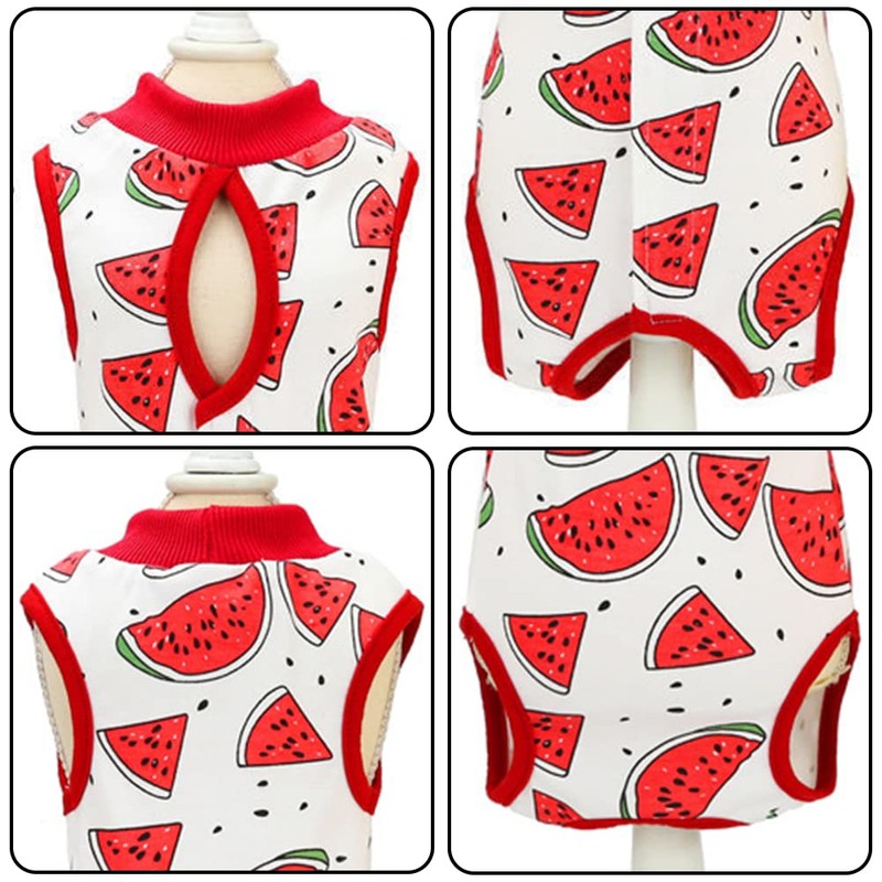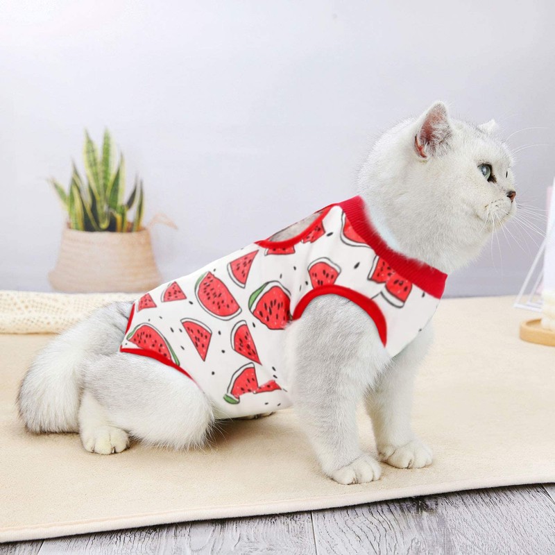 Cat Professional Surgery Recovery Suit, E-Collar Alternative, Cotton Breathable Cat Sterilization Suit for Abdominal Wounds, Pajama Suit for Kitten Anti-Biting Licking - Watermelon/L(7.5-10 lbs)