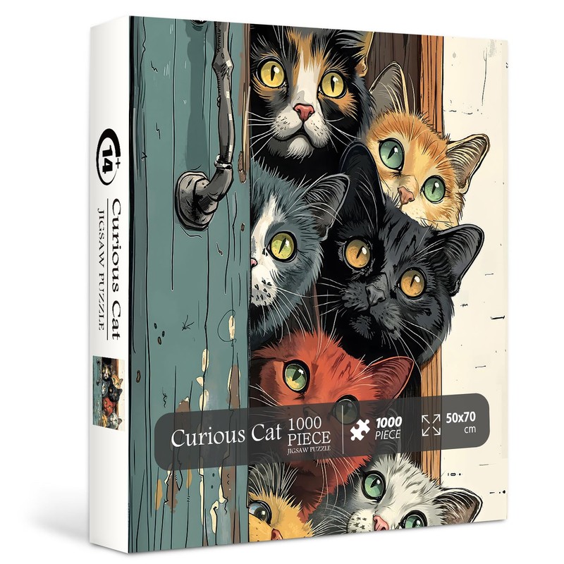 • Curious Cat Puzzle: This difficult puzzle shows a group of curious cats, peeking out from behind a door. Each cat's eyes sparkle with curiosity and anticipation, as if inviting you to join their adventure, and the expressions are lively and interesting, making people love it