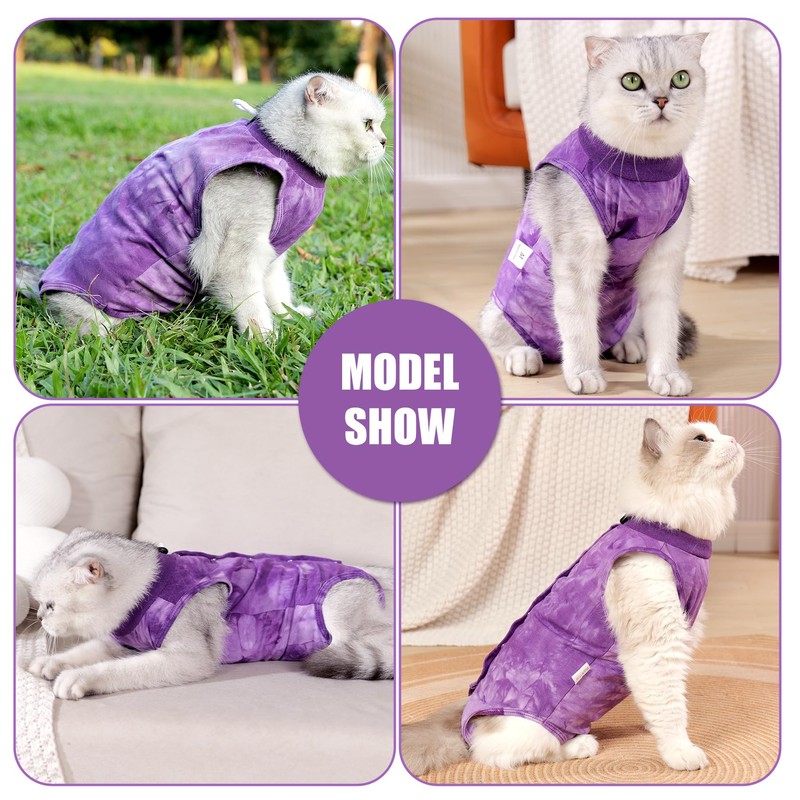 Cat Recovery Suit for Male and Female Surgical Post Surgery Soft Cone Onesie Tie Dye Cats Shirt Clothes Neuter Licking Protective Diapers Outfit Cover Kitten Spay Collar Alternative(Purple, L)