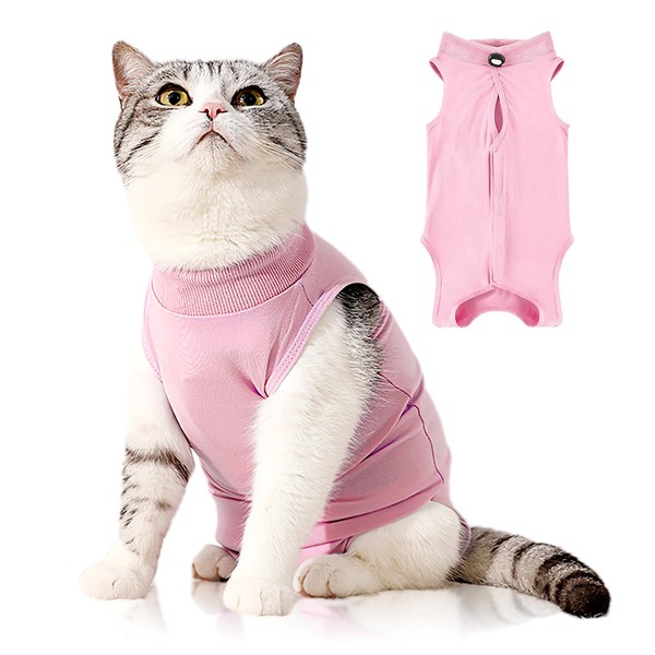 Cat Recovery Suit Post Surgery Bodysuit for Cats, Elizabethan Collar & Cone Alternative, Anti-Lick Pet Vest for Kitten Spaying, Professional Recovery Suit for Abdominal Wounds (Pink, L)
