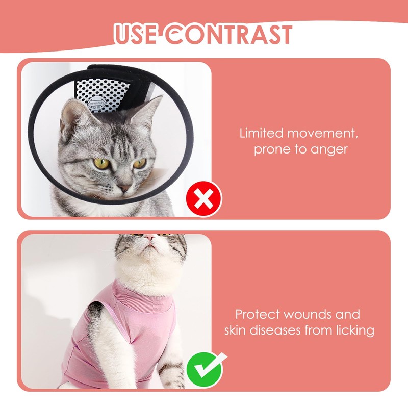 - Multi-Purpose Use: Ideal for disinfection care, post-surgery suture prevention, and warmth after shaving, this cat vests after surgery is suitable for cats, dogs, and other pets. It effectively protects wounds, bandages, hot spots, skin conditions, and incontinence.