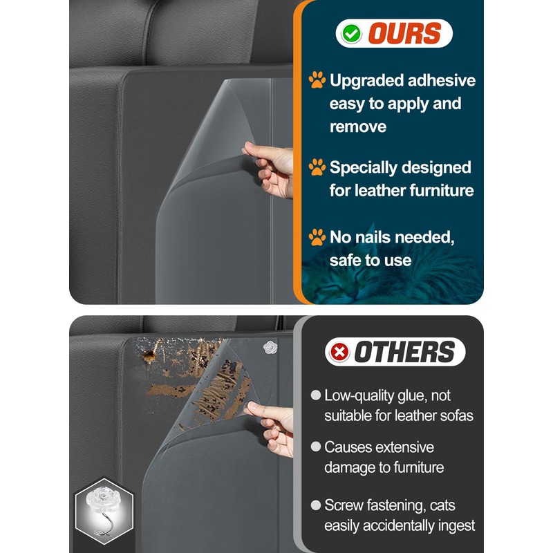 - 【Specially Designed for Leather】Our cat couch protector features a newly upgraded adhesive back specifically designed for leather furniture. It offers strong adhesion and is easy to peel off, ensuring it won't damage the leather surface or leave any residue, preserving the original appearance of your leather.