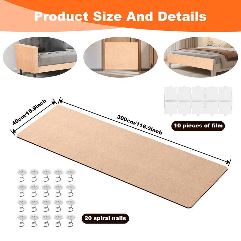 - 【Extra-large Size & Coverage】- This cat scratching mat measures 118.5 inches x 15.9 inches when unfolded (can be freely cut to size adhesive cat scratching mat), far exceeding the size of ordinary cat scratching pads available on the market, and can meet the needs of households with multiple cats. It is an excellent cat couch protector.