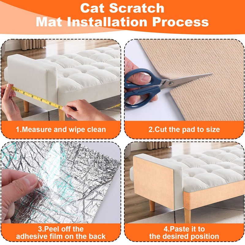 - 【Scratch-resistant & Wear-resistant】- Cat scratch mat uses upgraded materials to provide cats with a durable place to sharpen their claws, while also serving as a cat scratch furniture protector to protecting furniture from cat claws.