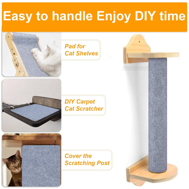- Trimmable & Self-Adhesive - This scratch pad has a strong adhesive and is a good car or furniture protector, or easy to cut into custom sizes. The self-adhesive backings of the cat wall scratcher is very sticky so it clings on well. These cat scraching mats can tightly stick on any furniture surface such as cloth, Cotton textile fabric, glass, wood.