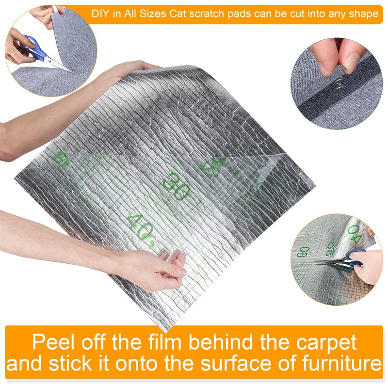 - Easy to Install - There are auxiliary lines on the back to assist in cutting. You can use scissors to cut the cat scratch pad into any shape according to your needs. Then, peel off the film on the back and stick it onto the furniture that needs protection.