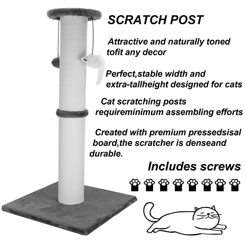 Ahomdoo Cat Scratching Post 34 Inches Heavy Duty and Thicker Cat Scratching Post Sisal Rope with Hanging Ball and Mice Scratching Post for Indoor Cats and Adult(Grey)