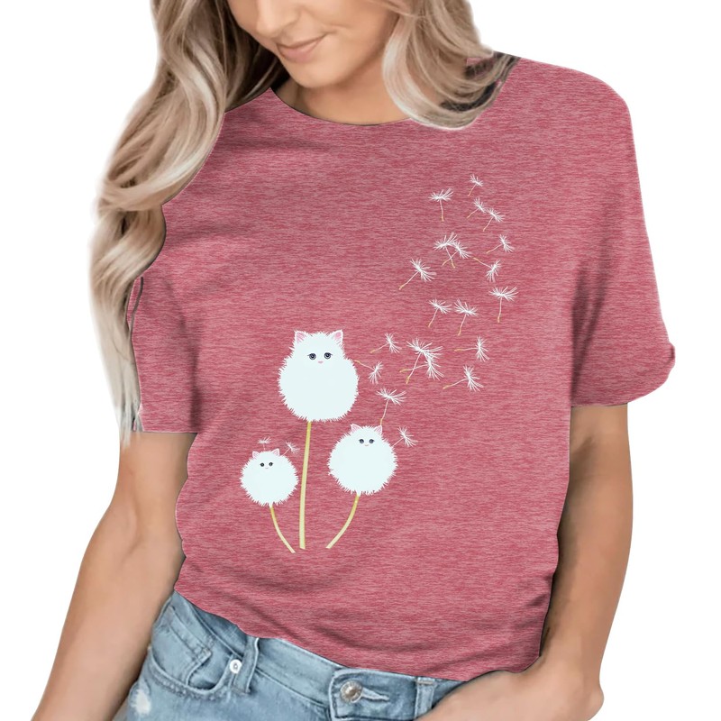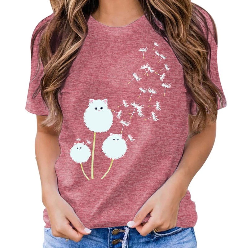- FASHION DESIGN:Suitable for women fashionable and cute style dandelion cat flower T-shirt.O-neck,casual style kindness t-shirt. Wearing this T-shirt will definitely make you stand out.