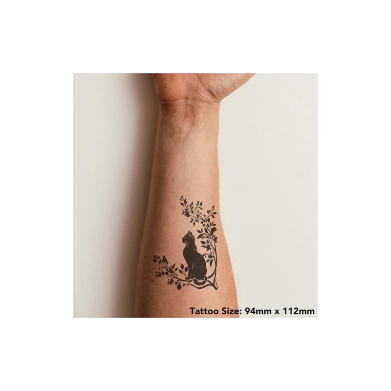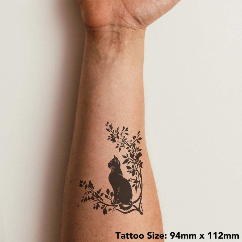 'Cat Sitting on Branch ' Temporary Tattoo - Water Resistant, Skin-Safe, Non-Toxic Transfer (TO00076155)