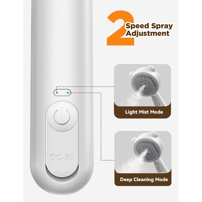 - BENEFITS OF THE STEAM BRUSH FOR CATS:(Note: Our cat steam brush only converts water into spray, without a heating process.)1. Reduces Flying Fur - Minimizes loose fur, keeping your home clean. Perfect for cat hair brush users and indoor cats 2. Anti-Static - Moistens fur, preventing static for smoother grooming. Ideal for cat brush for long-haired cats 3. Deep Cleaning - Removes dirt and oils, leaving coats shiny. A must-have for cat grooming supplies and pet brush lovers 4. Reduces Bathing Stress - Gentle steam cleaning for water-shy cats, minimizing stress. Great for dogs too