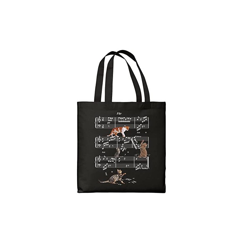 Cat Themed Gifts Funny Cats Walking On Classical Sheet Music Black Canvas Tote Bag